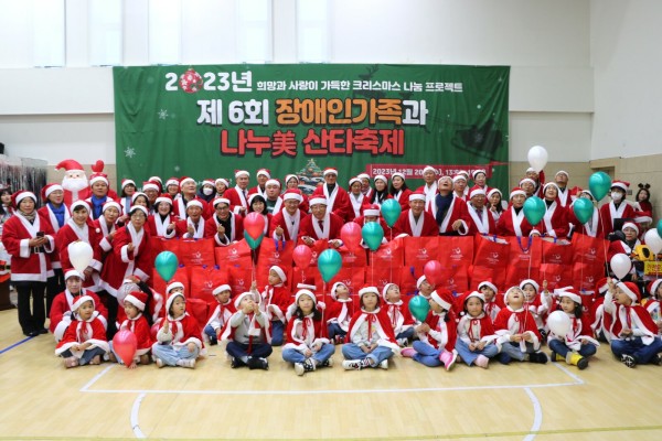 하남시장애인복지관, 제6회 장애인가족과 나누美 산타축제 성료 페이지 정보 작성자 하남시장애인복지관 작성일24-01-08 17:26 조회수89 본문 하남시장애인복지관(관장 민복기)이 지난 20일 2023년 크리스마스 나눔 프로젝트 '제 6회 장애인가족과 나누美 산타축제'를 개최해 성황리에 마무리하며 촬영한 사진입니다.기사원문보기 목록 이전글 ㈜케온솔루션, 하남시장애인복지관에 샴푸·바디워시 등 후원품 30박스 전달 24.01.08 다음글 CJ 나눔재단 하남시장애인복지관에 김장김치 200kg 나눔 24.01.08
