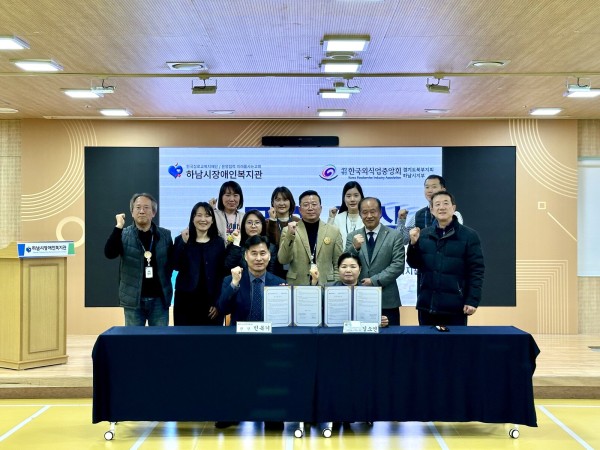 하남시장애인복지관, 한국외식업중앙회 하남시지부와 업무협약 체결 페이지 정보 작성자 하남시장애인복지관 작성일24-02-16 15:49 조회수91 본문 하남시장애인복지관과 (사)한국외식업중앙회 경기북부지회 하남시지부는 13일 하남시의 복지 서비스 증진과 나눔사업 활성화를 위한 업무협약을 체결하여 촬영한 사진입니다.기사원문보기 목록 이전글 하남시장애인복지관, KB국민은행 후원 설맞이 전통시장 사랑나눔 열어 24.02.28 다음글 대한불교조계종 천년고찰 동사 상우 주지스님, 하남시장애인복지관에 쌀(10kg) 50포 후원 24.02.16