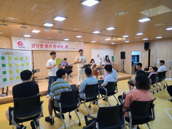 하남시장애인복지관 신나는예술여행사업 선정 페이지 정보 작성자 하남시장애인복지관 작성일23-09-07 13:15 조회수103 본문 하남시장애인복지관(관장 민복기)은 한국문화예술위원회가 후원하고 한국장애인복지관협회가 협력하여 진행하는 “신나는 예술 여행” 지원사업에 선정되어 관객들과 직접 악기를 연주하는 것부터 지휘, 핸드벨을 통한 함께 연주를 하는 등의 참여형 공연을 진행하며 촬영한 사진입니다.기사원문보기 목록 이전글 교촌치킨 미사역점 하남시장애인복지관에 발달장애인 생일 지원 후원품 전달 23.09.12 다음글 하남시장애인복지관 치료재활대기자를 위한 ‘옹기종기 조물조물’, ‘신나는 재활놀이터’ 운영 23.09.06