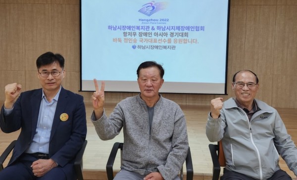 하남시장애인복지관, 하남시지체장애인협회 항저우장애인아시아경기대회 장애인 바둑 국가대표 정인숭 선수 격려 페이지 정보 작성자 하남시장애인복지관 작성일23-10-23 16:47 조회수87 본문 하남시장애인복지관(관장 민복기)과 하남시지체장애인협회(회장 정규인)가 제4회 항저우 장애인 아시아경기대회 바둑 국가대표선수로 참가하는 정인숭 선수의 선전을 위해 격려하는 시간을 가지며 촬영한 사진입니다.기사원문보기 목록 이전글 시립미사강변골든센트로어린이집, 하남시장애인복지관에 재가장애인가정을 위한 후원금 전달 23.10.23 다음글 하남시장애인복지관, 'KB국민은행과 함께하는 추석맞이 전통시장 사랑나눔' 진행 23.09.25