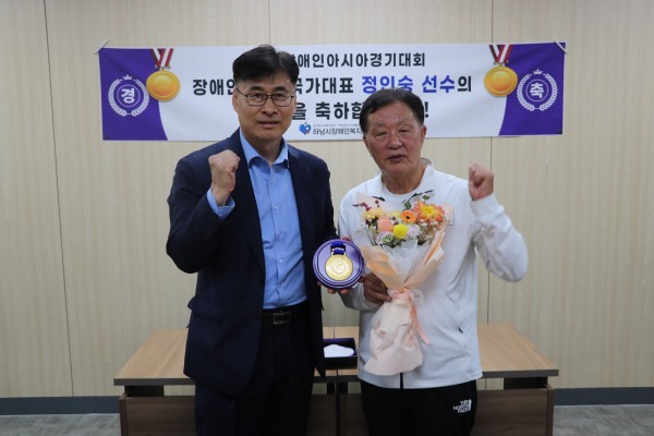 하남시장애인복지관 정인숭 바둑강사, 항저우장애인아시아경기대회 바둑 단체전 금메달 쾌거 페이지 정보 작성자 하남시장애인복지관 작성일23-11-27 11:09 조회수92 본문 하남시장애인복지관에서 2022 항저우 장애인 아시아경기대회 바둑 단체전 금메달 쾌거를 이루어낸 정인숭 선수를 축하하는 자리를 가지며 촬영한 사진입니다.기사원문보기 목록 이전글 하남시 하나캐피탈, 장애인 직업훈련을 위한 환경개선사업에 후원 23.11.27 다음글 하남시, 뮤직캠프와 함께 떠나는 2023 찾아가는 활동지원사 힐링콘서트 23.10.30