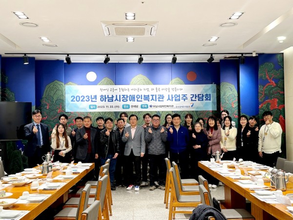하남시장애인복지관, 장애인 고용 사업주 간담회 실시 페이지 정보 작성자 하남시장애인복지관 작성일23-12-08 09:46 조회수89 본문 하남시장애인복지관이 ‘2023 장애인 고용 사업주 간담회’를 실시하여 장애인 고용을 진행한 사업주와 장애인 직업훈련 기회를 제공한 사업주를 대상으로 장애인 고용을 위한 지속적인 협력관계를 유지하고 독려하고자 마련한 자리에서 촬영한 사진입니다.기사원문보기 목록 이전글 기아대책 하남후원이사회 하남시장애인복지관에 2023년 따뜻한 희망상자 40박스 지원 23.12.08 다음글 하남시장애인복지관, 2023년 하남농협 하나로마트와 함께하는 겨울 김장김치 나눔 행사 23.11.27