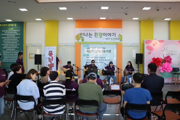 하남시장애인복지관, 제 51회 어버이날 기념행사 진행 페이지 정보 작성자 하남시장애인복지관 작성일23-05-11 14:43 조회수110 본문 하남시장애인복지관이 제 51회 어버이날을 맞이하여 장애인 가족 어르신을 위한 행사를 진행함에 따라, 어르신들에게 카네이션을 달아드리고 건강 식품 선물과 카네이션 포토존 사진 촬영 진행, ⌜하남뮤직캠프 밴드⌟와 ⌜라라라 우쿨⌟팀 무료공연등 다양한 행사를 진행하며 어버이 은혜에 감사의 마음을 전달하는 행사를 진행하며 촬영한 사진입니다.기사원문보기 목록 이전글 하남시장애인복지관, 부부의 날 당신은 내 운명 행사 진행 23.05.23 다음글 하남시장애인복지관, 어린이날 꿈 드림(DREAM)행사 진행 23.05.11