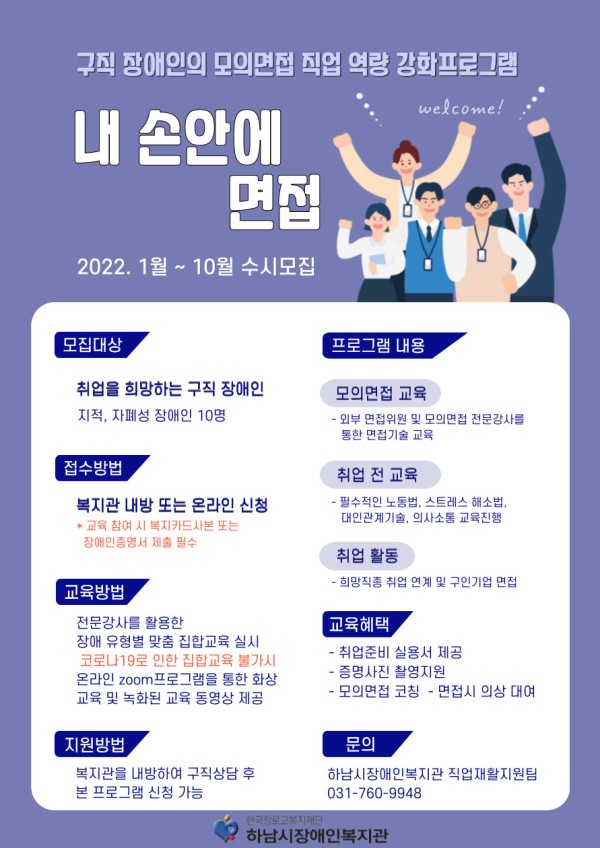 하남시장애인복지관, 구직장애인 모의면접 및 직업역량 강화 프로그램 참여자 모집