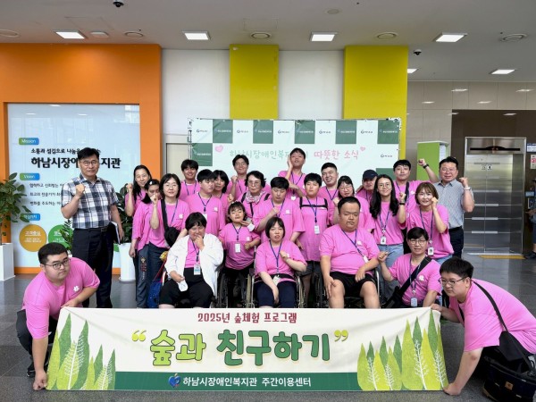 하남시장애인복지관 주간이용센터, 국립춘천숲체원 '나눔의 숲' 캠프 참여 페이지 정보 작성자 하남시장애인복지관 작성일25-07-17 14:10 조회수64 본문 하남시장애인복지관 주간이용센터(센터장 민복기)에서 한국산림복지진흥원 국립춘천숲체원에서 진행된 ‘2025 나눔의 숲’ 캠프에 참여하여 촬영한 사진입니다.기사원문보기 목록 이전글 하남시장애인복지관 청년대학 '김윤수' 학생, 2025년 경기도발달장애인자기권리주장대회 '대상' 수상 25.07.22 다음글 하남시장애인복지관, 하도스포츠로 세계를 잇다! 세계 최초 장애인-비장애인 AR스포츠 국제친선교류전 성료 25.07.17