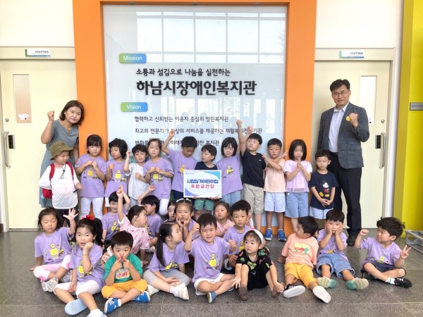 시립일가어린이집, 바자회 수익금 전액 기부 하남시장애인복지관에 온정 전달 페이지 정보 작성자 하남시장애인복지관 작성일24-08-22 13:46 조회수84 본문 시립일가어린이집(원장 정혜진)이 하남시장애인복지관에서 운영하는 상상누림터를 체험한 후, ‘아나바다’ 바자회 수익금 전액인을 기부하며 촬영한 사진입니다.기사원문보기 목록 이전글 사단법인 한국고용서비스진흥원, 하남시장애인복지관 자립준비 청년들을 위한 업무협약 체결 24.09.04 다음글 하남시장애인복지관, ㈜우성케어 전동침대 지원사업 선정 및 업무협약 체결 24.08.22
