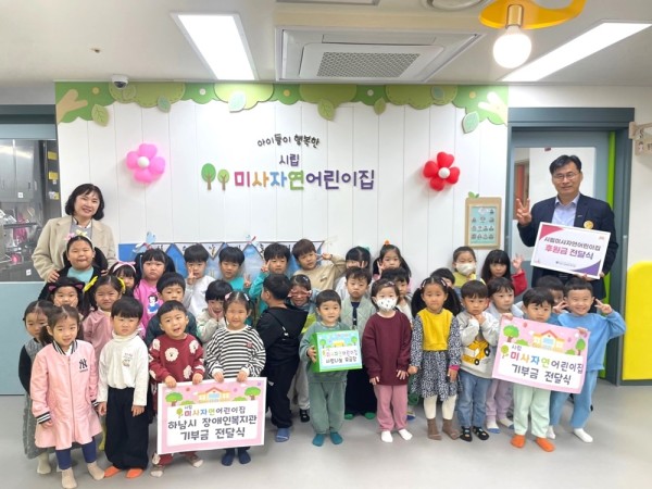 시립미사자연어린이집, 하남시장애인복지관에 아나바다 바자회 수익금 기부 페이지 정보 작성자 하남시장애인복지관 작성일24-11-05 09:22 조회수94 본문 시립미사자연어린이집이 아나바다 바자회 수익금과 학부모와 원아들이 '사랑나눔모금함'에 참여한 모금액을 하남시장애인복지관에 기부하며 촬영한 사진입니다.기사원문보기 목록 이전글 하남농협 하나로마트와 함께하는 겨울 김장김치 나눔 행사 24.11.06 다음글 하남도시공사, 하남시 장애인 농구단 위한 따뜻한 후원품 전달 24.11.05