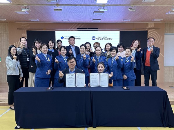 하남시장애인복지관-하남시중학교학부모폴리스단 업무협약 체결 페이지 정보 작성자 하남시장애인복지관 작성일24-11-19 19:24 조회수69 본문 하남시장애인복지관(관장 민복기)이 하남시중학교학부모폴리스연합단(단장 이재숙)과 지난 13일 업무협약 체결을 통해 상호협력관계를 맺고 하남시 관내 장애인들의 지역사회복지서비스 증진 및 안전한 교육환경을 위해 서로 협력하기로 하며 촬영한 사진입니다.기사원문보기 목록 이전글 오형제 손짜장 하남점, 하남시장애인복지관 나눔반상으로 백만원 식사쿠폰 후원 24.12.09 다음글 하남시장애인복지관, NH농협하남시지부와 '아침밥 먹기 상생협력' 협약 체결 24.11.12