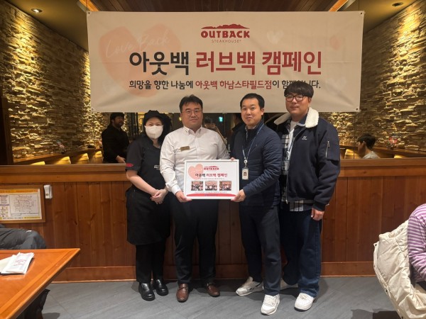 아웃백 하남스타필드점, 하남시장애인복지관과 네 번째 러브백 아웃백 데이 나눔 반상 페이지 정보 작성자 하남시장애인복지관 작성일24-12-09 09:11 조회수87 본문 아웃백스테이크하우스 하남스타필드점이 한 해를 마무리하는 기념으로 '러브백 아웃백 데이'로 풍족한 나눔 반상 캠페인을 진행하고 촬영한 사진입니다.기사원문보기 목록 이전글 시립루나리움어린이집, 하남시장애인복지관에 아나바다 바자회 수익금 전액 기부 24.12.09 다음글 하남시장애인복지관, 장애인 고용 안정 위한 협력 간담회 진행 24.12.09