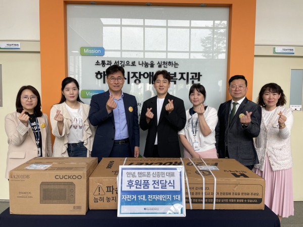 안녕, 핸드폰, 하남시장애인복지관에 후원품 기부 페이지 정보 작성자 하남시장애인복지관 작성일24-04-26 10:04 조회수94 본문 '안녕, 핸드폰'(대표 신종민)이 제44회 장애인의 날을 기념해 복지관에 자전거 1대와 전자레인지 1대를 기부하며 촬영한 사진입니다.기사원문보기 목록 이전글 미사리남원추어탕 본점, 하남시장애인복지관에 자전거 2대 기부 24.04.26 다음글 하남시 장애인주간보호시설 연합, 장애인의 날 기념 걷기대회 개최 24.04.26
