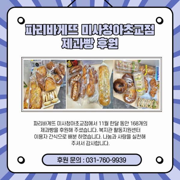 후원내역 파리바게뜨 미사청아초교점-제과빵 후원