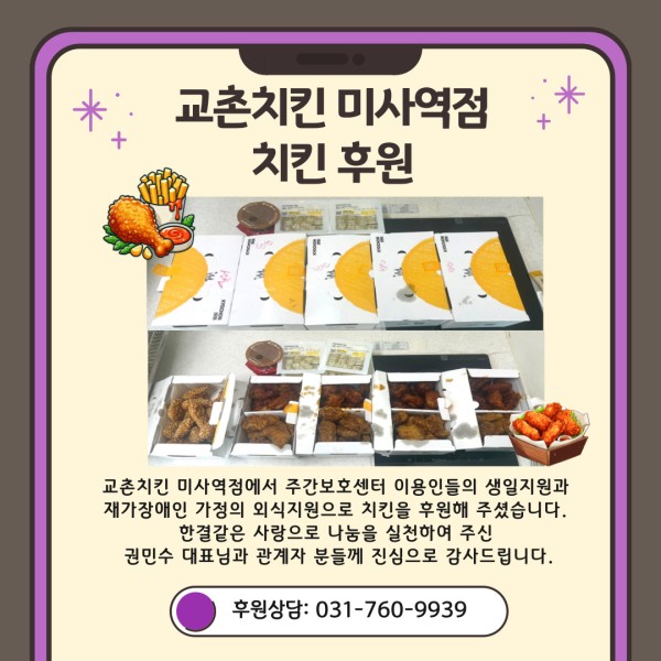 교촌치킨 미사역점에서 주간보호센터 이용인들의 생일지원과