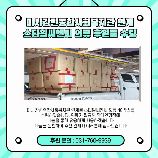미사강변종합사회복지관 연계로 스타일씨엔씨 의류 40박스를