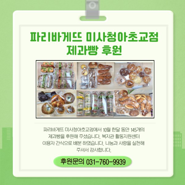 후원내역 파리바게뜨 미사청아초교점-제과빵 후원