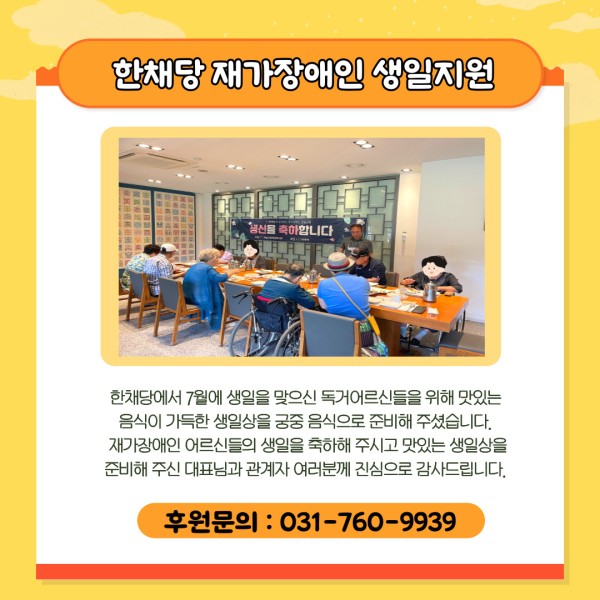 한채당에서 7월에 생일을 맞으신 독거어르신들을 위해 맛있는