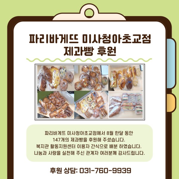 후원내역 파리바게뜨 미사청아초교점_제과빵 후원