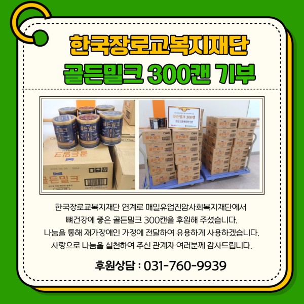 뼈건강에 좋은 골든밀크 300캔을 후원해 주셨습니다.