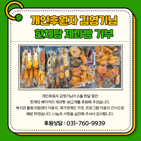 한채당 베이커리 제과빵 462개를 후원해 주셨습니다.