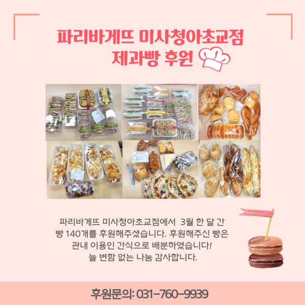 후원내역 파리바게뜨 미사청아초교점 제과빵 후원