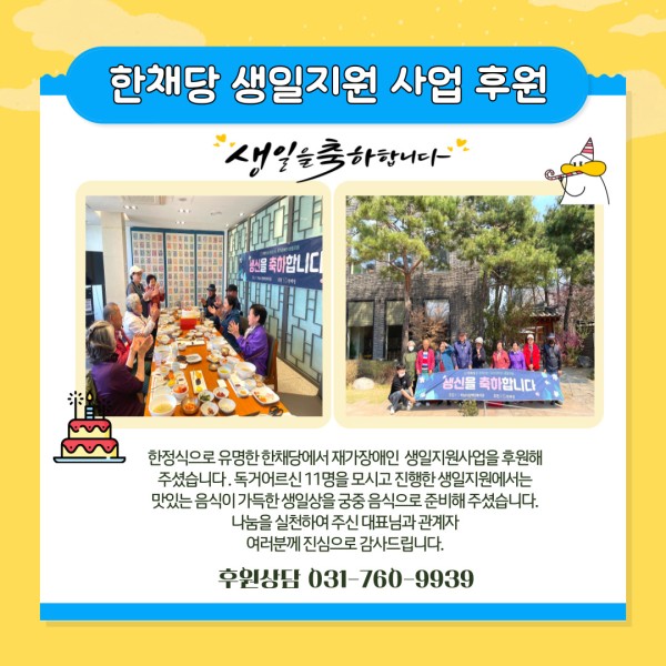 한정식으로 유명한 한채당에서 재가장애인 생일지원사업을 후원해