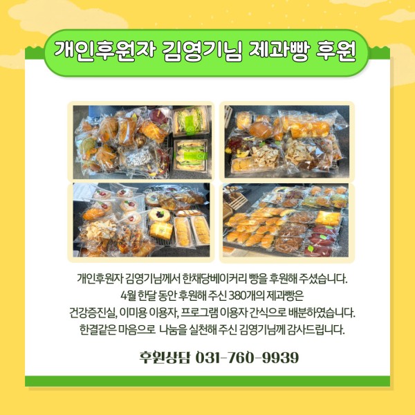 개인후원자 김영기님께서 한채당베이커리 빵을 후원해 주셨습니다.