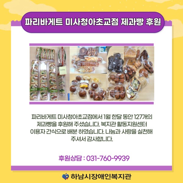 후원내역 파리바게트 미사청아초교점 제과빵 후원