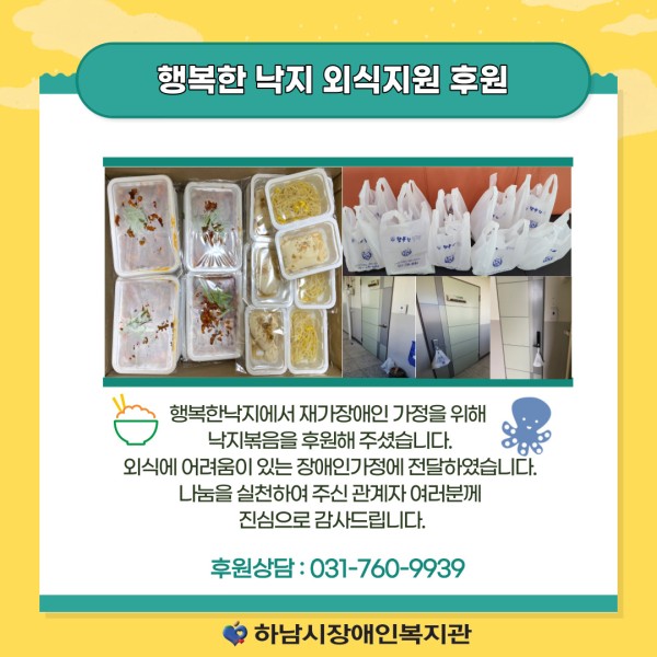 외식에 어려움이 있는 장애인가정에 전달하였습니다.