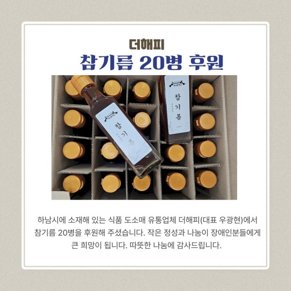 참기름 20병을 후원해 주셨습니다. 작은 정성과 나눔이 장애인분들에게