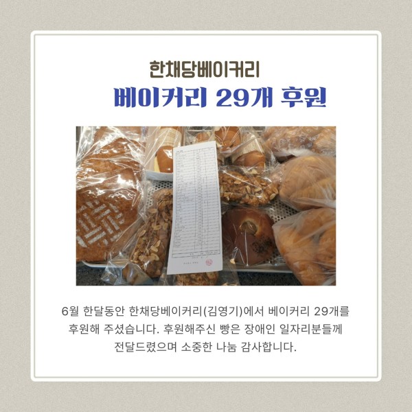 후원해 주셨습니다. 후원해주신 빵은 장애인 일자리분들께