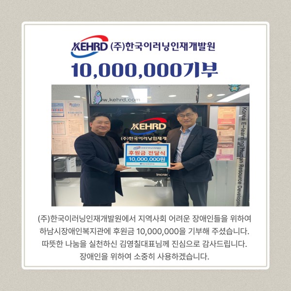 하남시장애인복지관에 후원금 10,000,000을 기부해 주셨습니다.