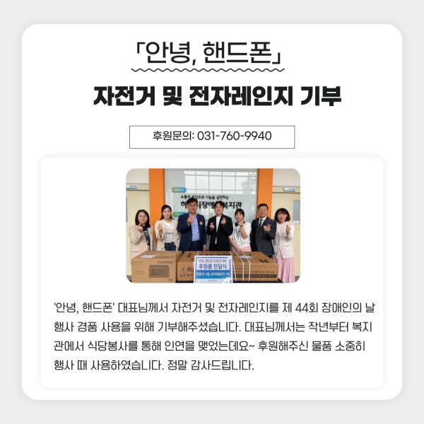 '안녕, 핸드폰' 대표님께서 자전거 및 전자레인지를 제 44회 장애인의 날