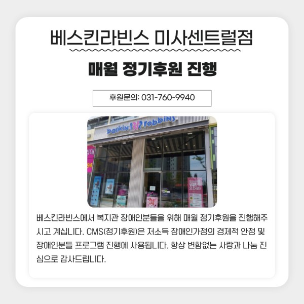 후원내역 베스킨라빈스 미사센트럴점, 매월 정기후원(CMS) 진행