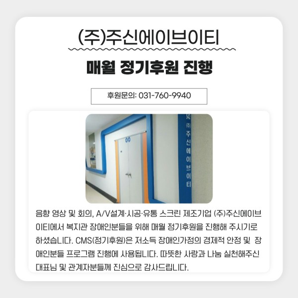 하셨습니다. CMS(정기후원)은 저소득 장애인가정의 경제적 안정 및 장