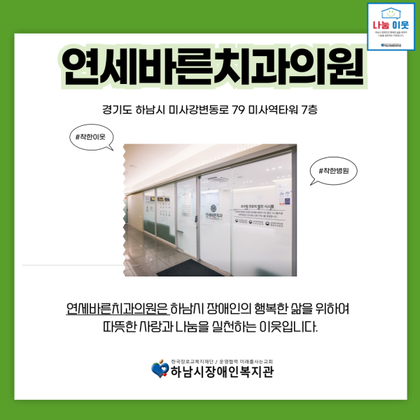 연세바른치과의원은 하남시 장애인의 행복한 삶을 위하여