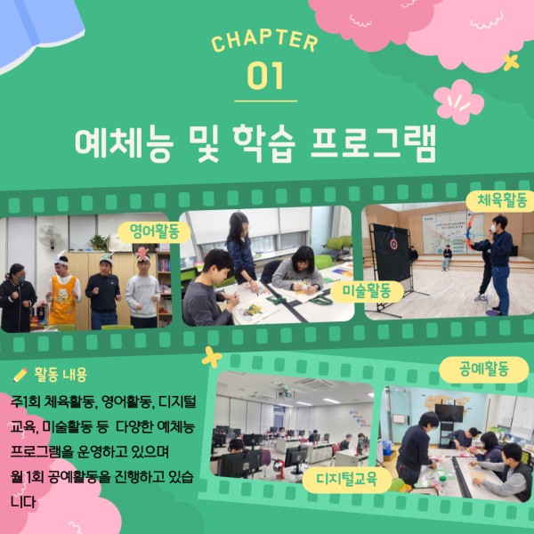 주 1회 체육 활동, 영어 활동, 디지털교육, 미술 활동 등