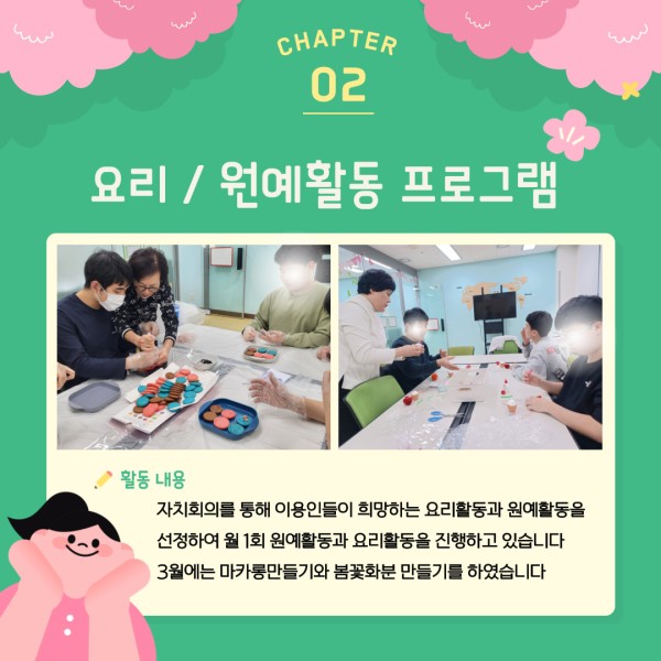 3월에는 마카롱만들기와 봄꽃화분 만들기를 하였습니다