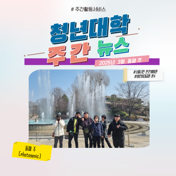 언제나 새로운 배움을 찾고 즐기는 청년 대학(주간 활동 서비스) 학생들에게 박수를 보내며, 다음 주 새로운 소식 많이 기대해 주세요.