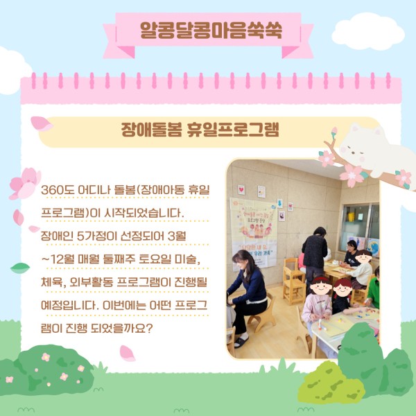 360도 어디나 돌봄(장애아동 휴일프로그램)이 시작되었습니다.