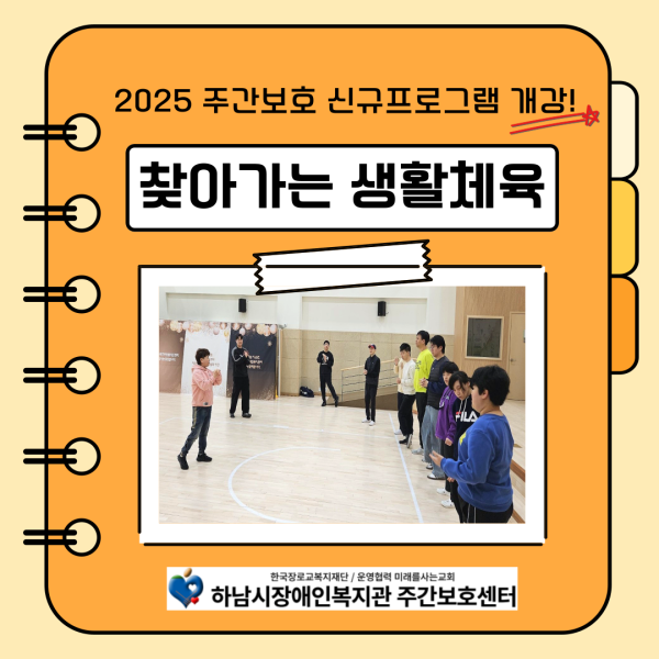 주간이용센터 [주간보호] 2025년 찾아가는 생활체육 프로그램 신규 개강! 페이지 정보 작성자 하남시장애인복지관 작성일25-02-05 19:37 조회수237 본문 자세히 보기자세히 보기2025년 주간보호센터 '찾아가는 생활 체육' 신규 프로그램 개강!주간보호센터에서는 이용인들을 위해 다양한 프로그램을 운영하고 있습니다.2025년 하남시장애인체육회와 연계하여 '찾아가는 생활 체육' 프로그램을 새롭게 진행합니다.이용인들을 위한 1:1 맞춤형 체육 활동으로 매주 월요일 14:00, 복지관 4층 스포츠활동실에서 진행되며,다양한 스포츠를 체험하고 도전해보는 시간으로 준비하겠습니다.모두 응원해주세요! :) 목록 이전글 청년대학 주간뉴스 25.02.10 다음글 [주간보호] 절기행사 진행 25.01.31