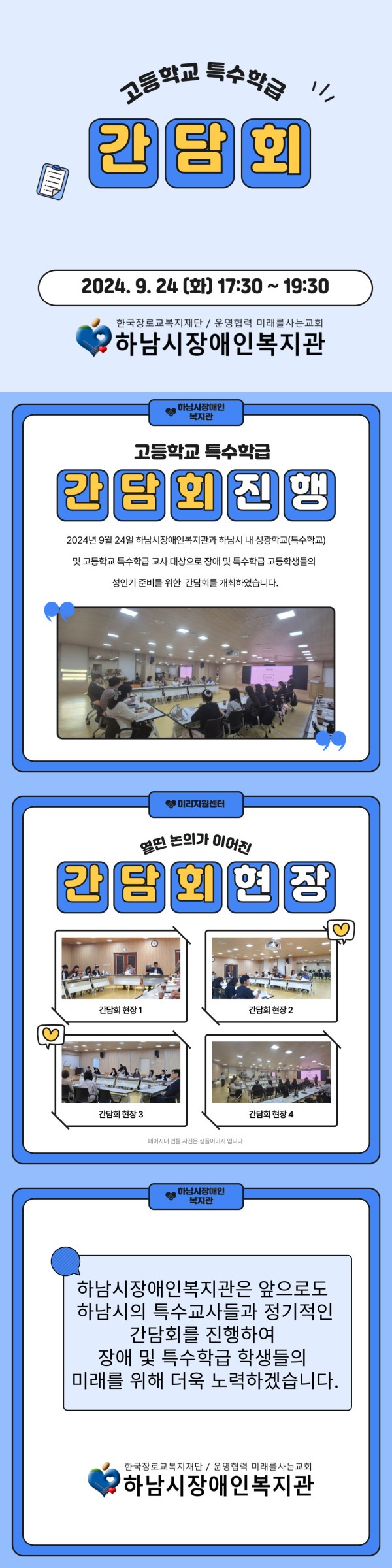 하남시 장애인복지관은 앞으로도 하남시의 특수학급 학생들의 미래를 위해 더욱 노력하겠습니다.