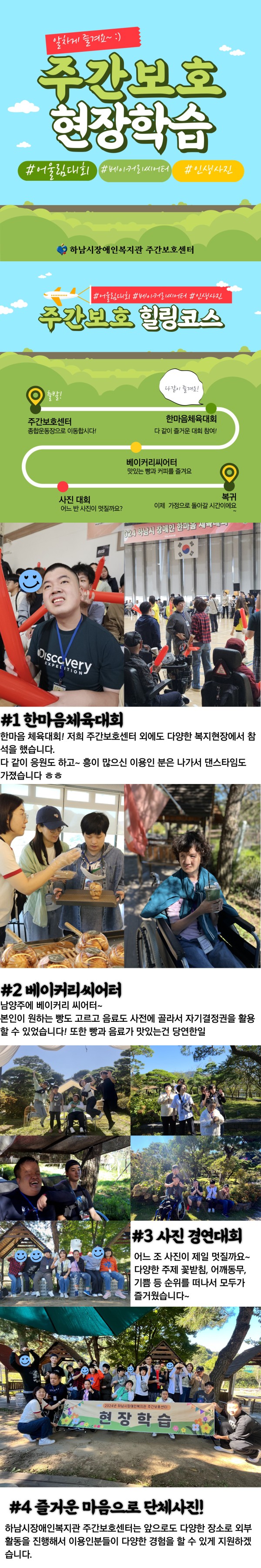 하남시장애인복지관 주간보호센터는 앞으로도 다양한 장소로 외부 활동을 진행해서 이용인분들이 다양한 경험을 할 수 있게 지원하겠습니다.