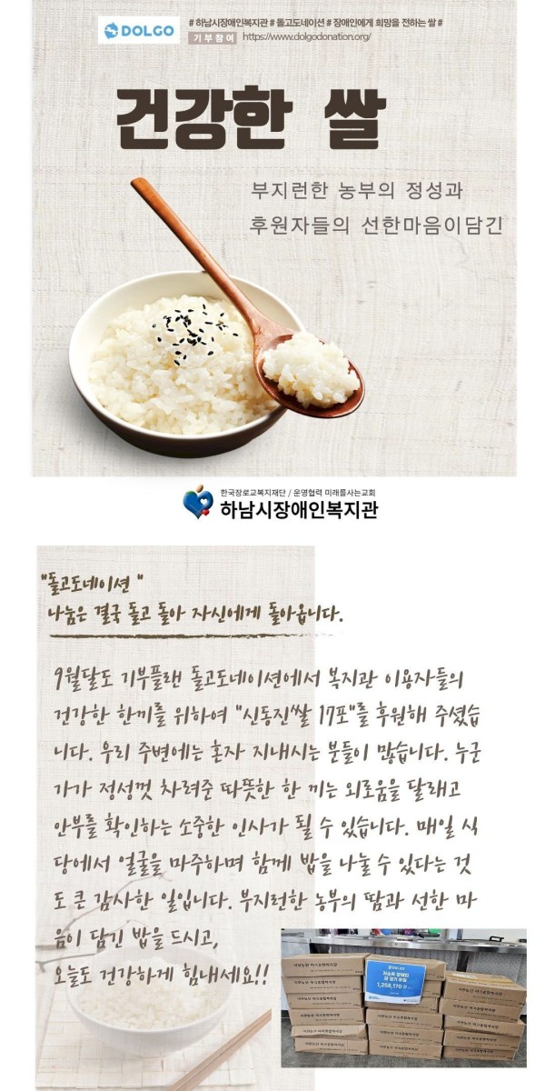 # 하남시장애인복지관 # 돌고도네이션 # 장애인에게 희망을 전하는 쌀 #