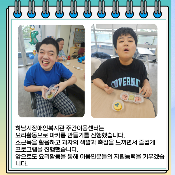 9월 3째 주에는 요리할동 마카롱만들기를 진행했습니다.
