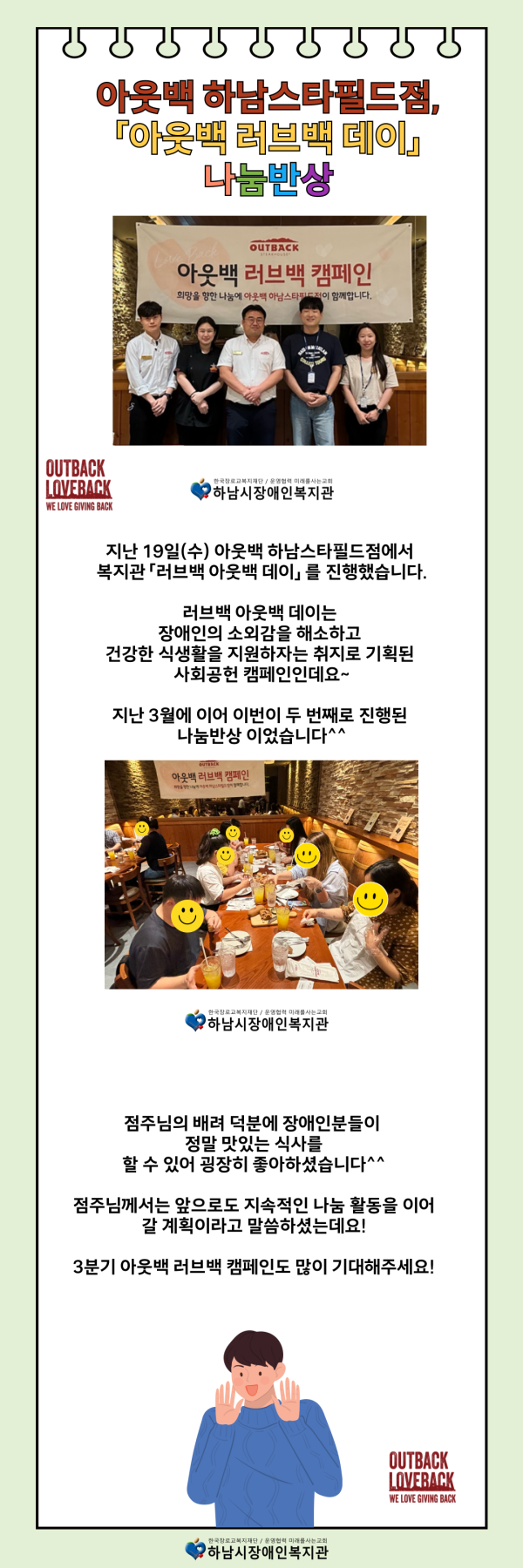 지역사회개발 [지역사회] 아웃백 하남스타필드점, 「아웃백 러브백 데이」 나눔반상 진행
