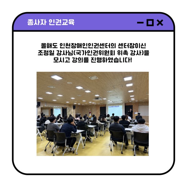 올해도 인천장애인인권센터의 센터장이신 조정일 강사님(국가인권위원회 위촉 강사)을 모시고 강의를 진행하였습니다!