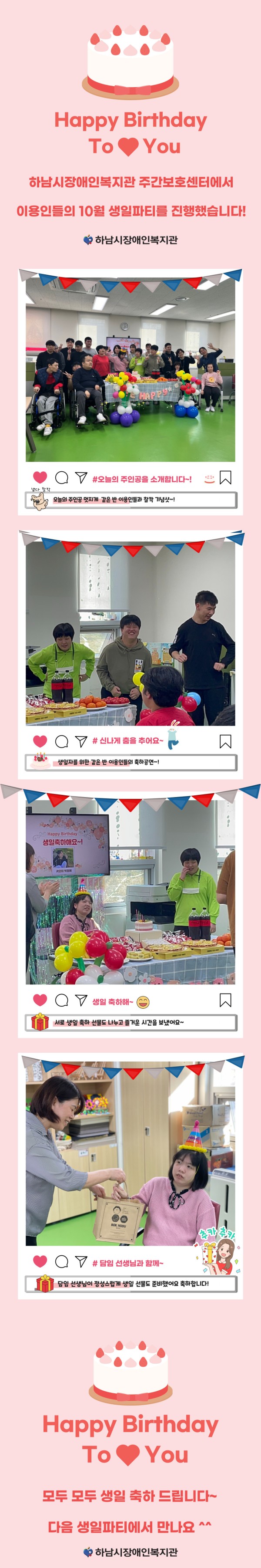 하남시장애인복지관 주간보호센터에서 이용인들의 10월 생일파티를 진행했습니다.