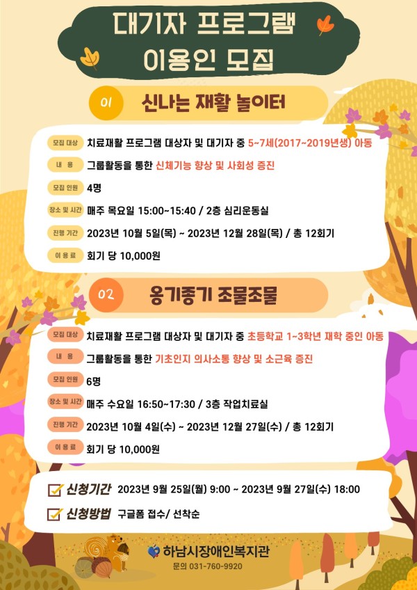 2023년 3차 대기자프로그램(신나는 재활 놀이터, 옹기종기 조물조물) 모집합니다.