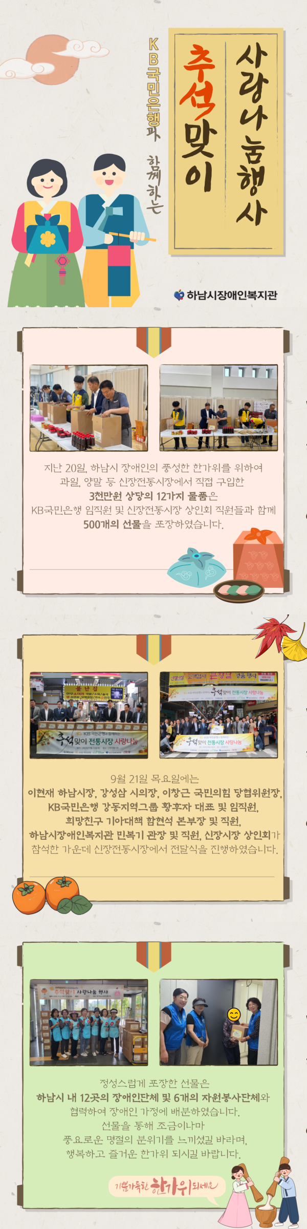 지난 20일, 하남시 장애인의 풍성한 한가위를 위하여