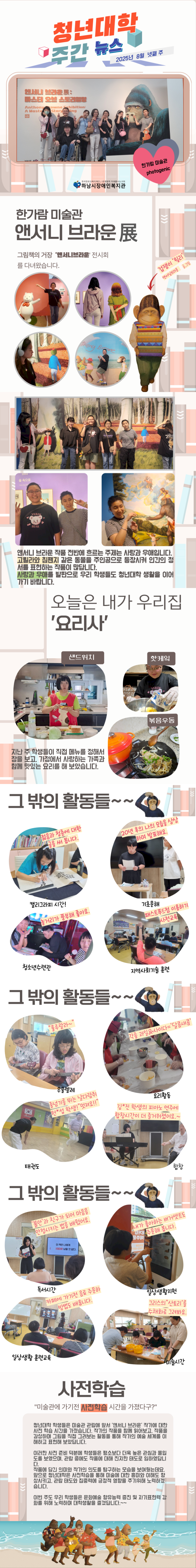앞으로 청년대학은 사전학습을 통해 미술에 대한 흥미와 이해도 향상시키고, 관람 태도와 집중력에 긍정적 영향을 주기위해 노력하겠습니다.