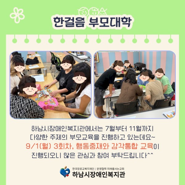 하남시장애인복지관에서는 7월부터 11월까지 다양한 주제의 부모교육을 진행하고 있는데요~